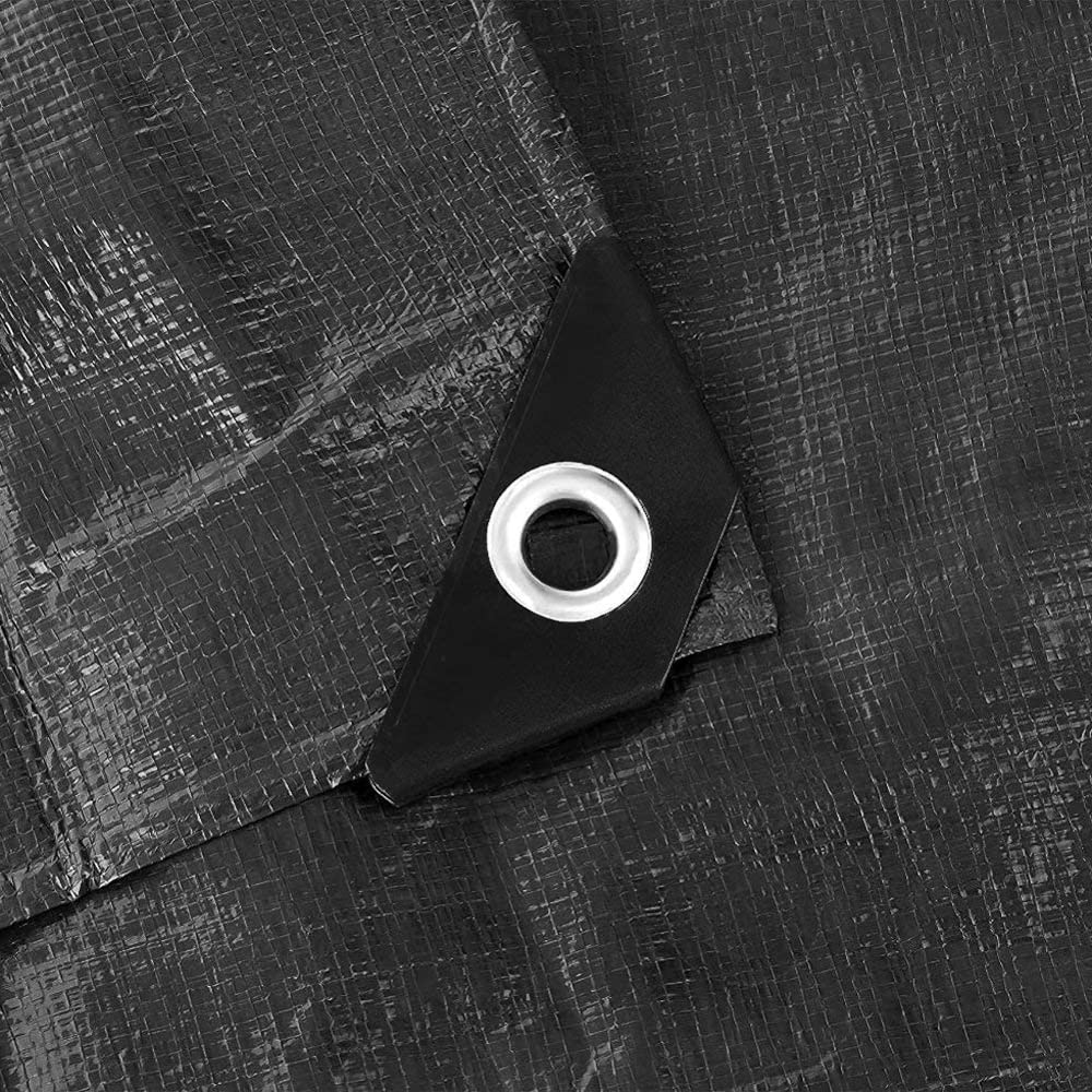 10 x 12 m Tarpaulin Waterproof Heavy Duty Cover Ground Sheet Camping with 4 Tarp Clips + 10m / 30ft Bungee Cord (Black - 235GSM)