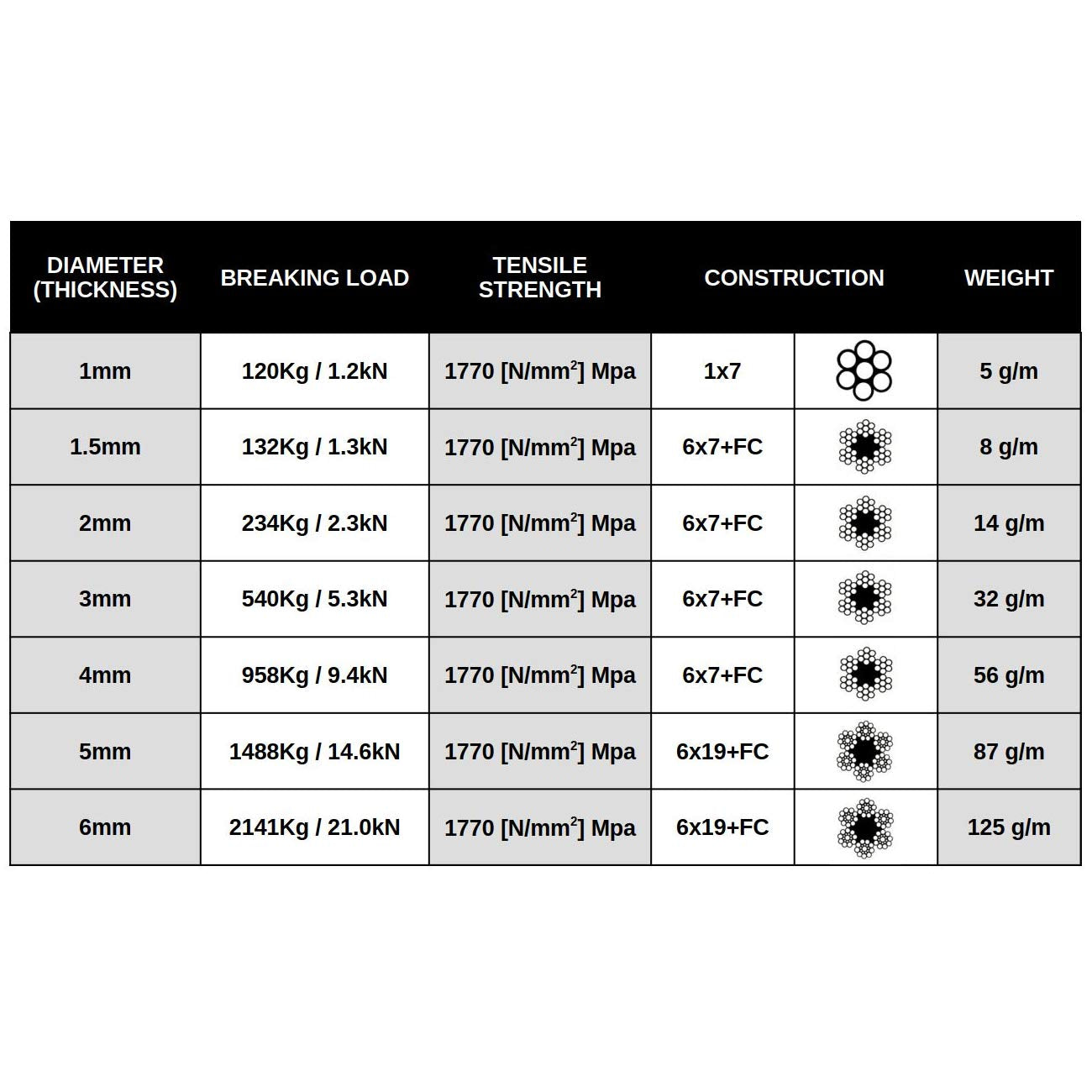 1.5 mm Thick Wire Rope Wire Cable - 5 metres / 16.40 ft - Galvanised Metal Steel Rope
