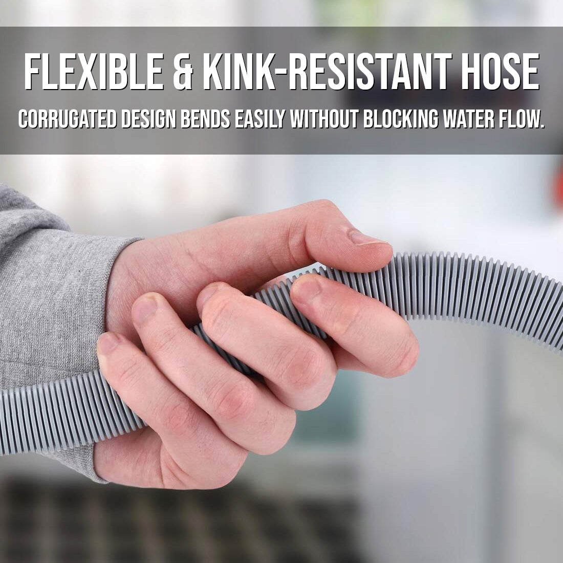 - Durable, Flexible Construction - The corrugated hose is made of strong, flexible plastic that resists twisting, cracking, and daily wear. Ideal for high-usage laundry rooms and kitchens.