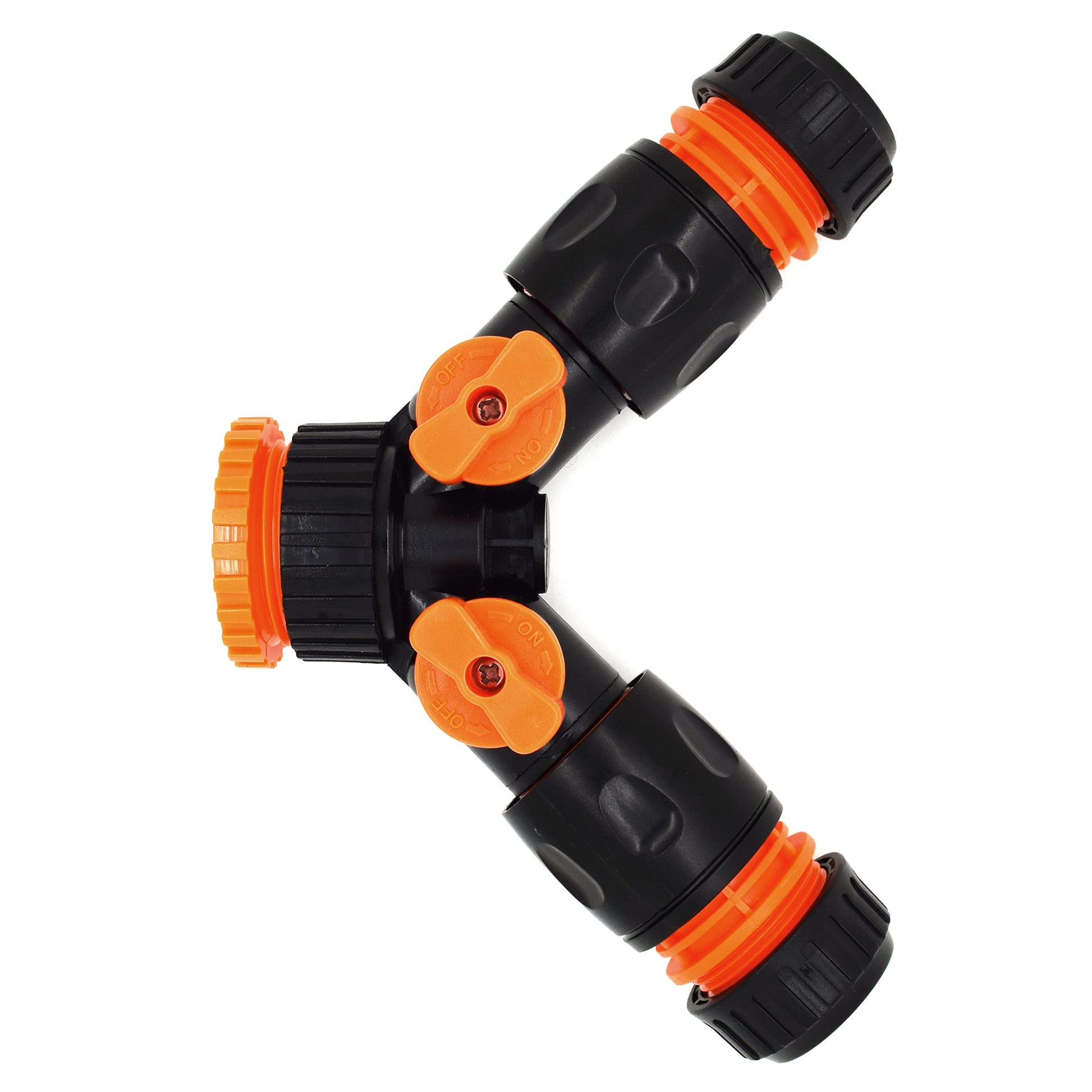 - The 2-way Y-connector-garden hose distributor has 2-way joints and 2 separate on-off valves. After using the water separator, it can easily convert 1 faucet into 2 high-flow water sources, thereby making your garden life easier.