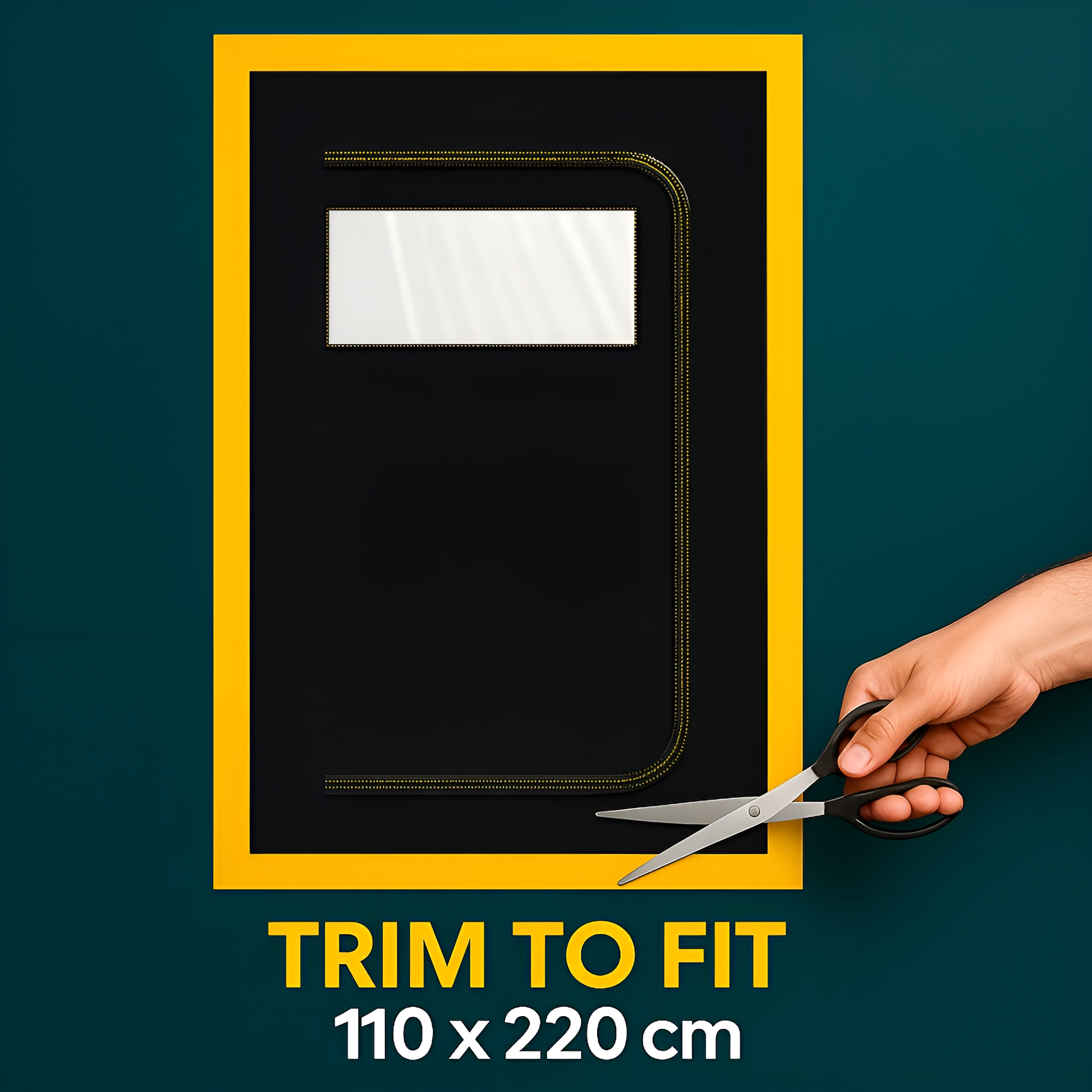 - Fits Most Doorways - Supplied 110 x 220 cm suits typical UK frames at home or work. Trim to fit narrower openings and cupboards, then tape the new edge for a neat, tailored result that keeps the zip running freely.