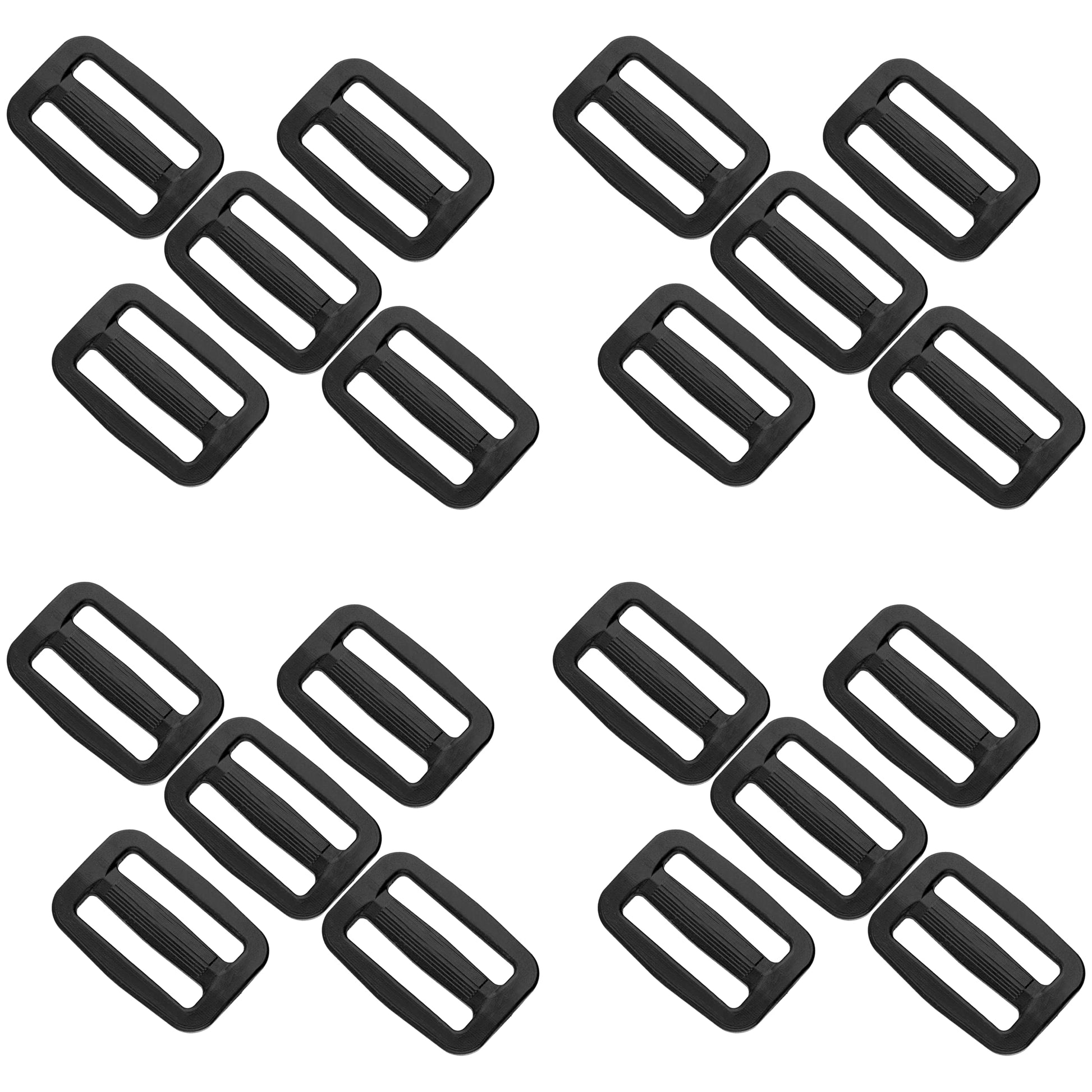 - 3 Bar Tri Glide Sliders Buckles Fasteners for 25 mm / 1 in Webbing Strap, Backpack, Bag, Accessories, Black Delrin Plastic (Pack of 20).