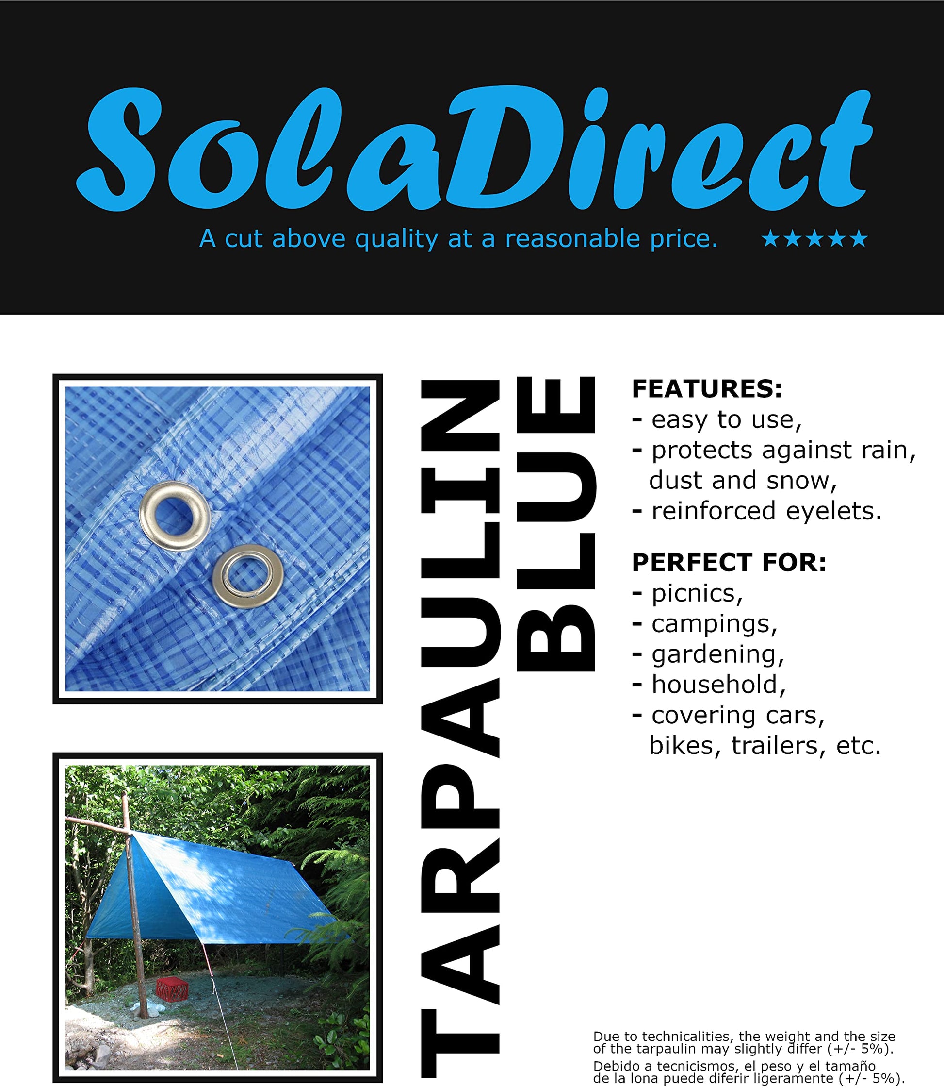 - 4 x 6 m Tarpaulin Waterproof Cover Ground Sheet Camping Multipurpose Furniture Caravan with 4 Tarp Clips and 10 m / 32 ft Black Bungee Cord (Blue – 50 GSM).