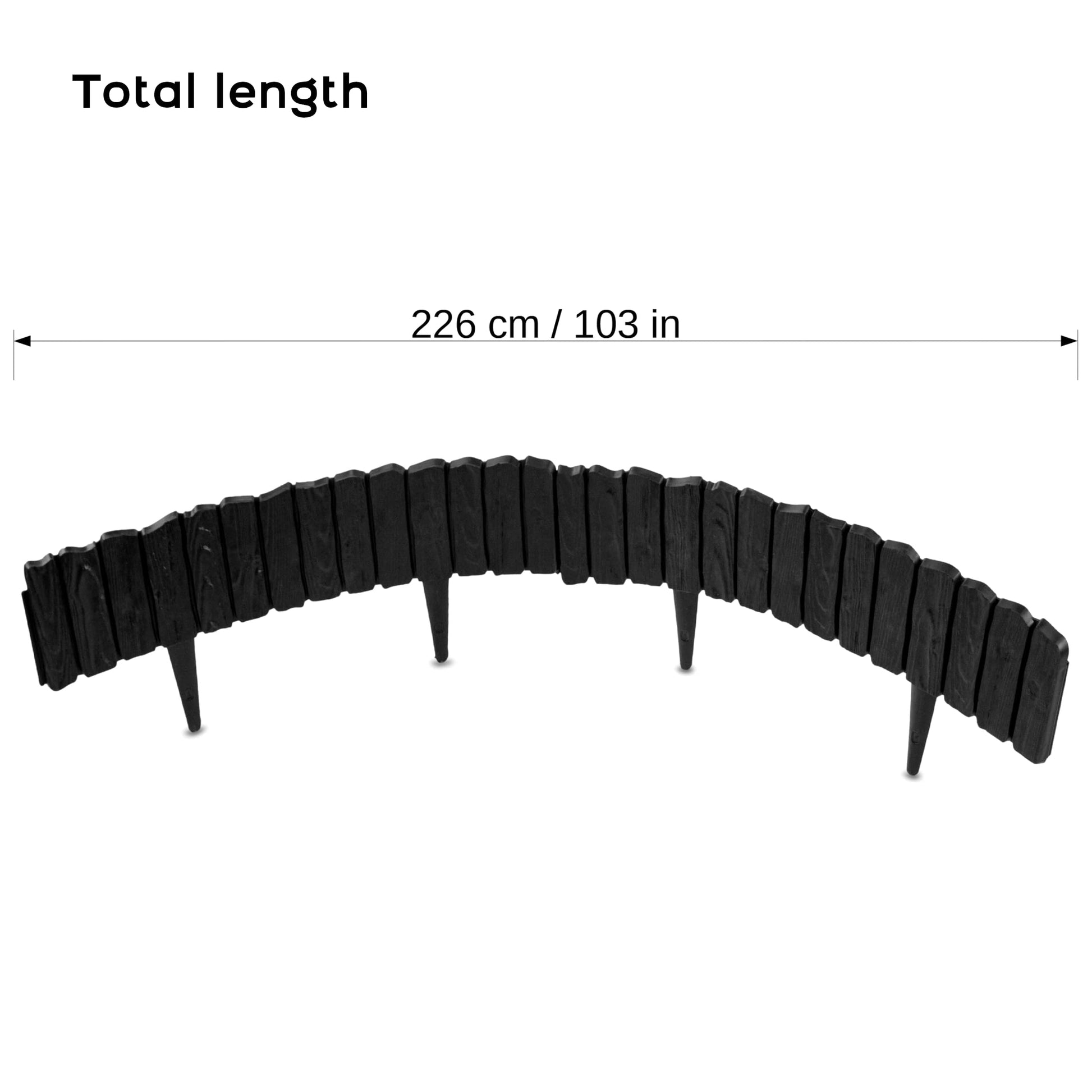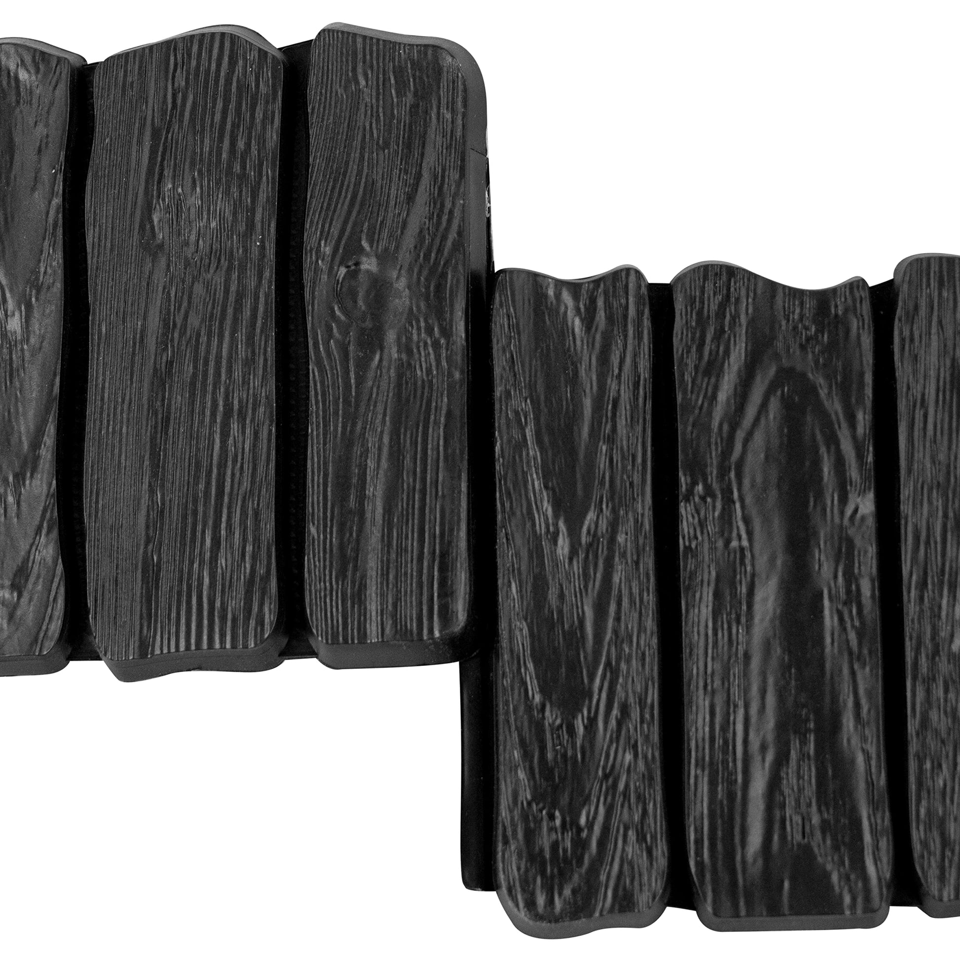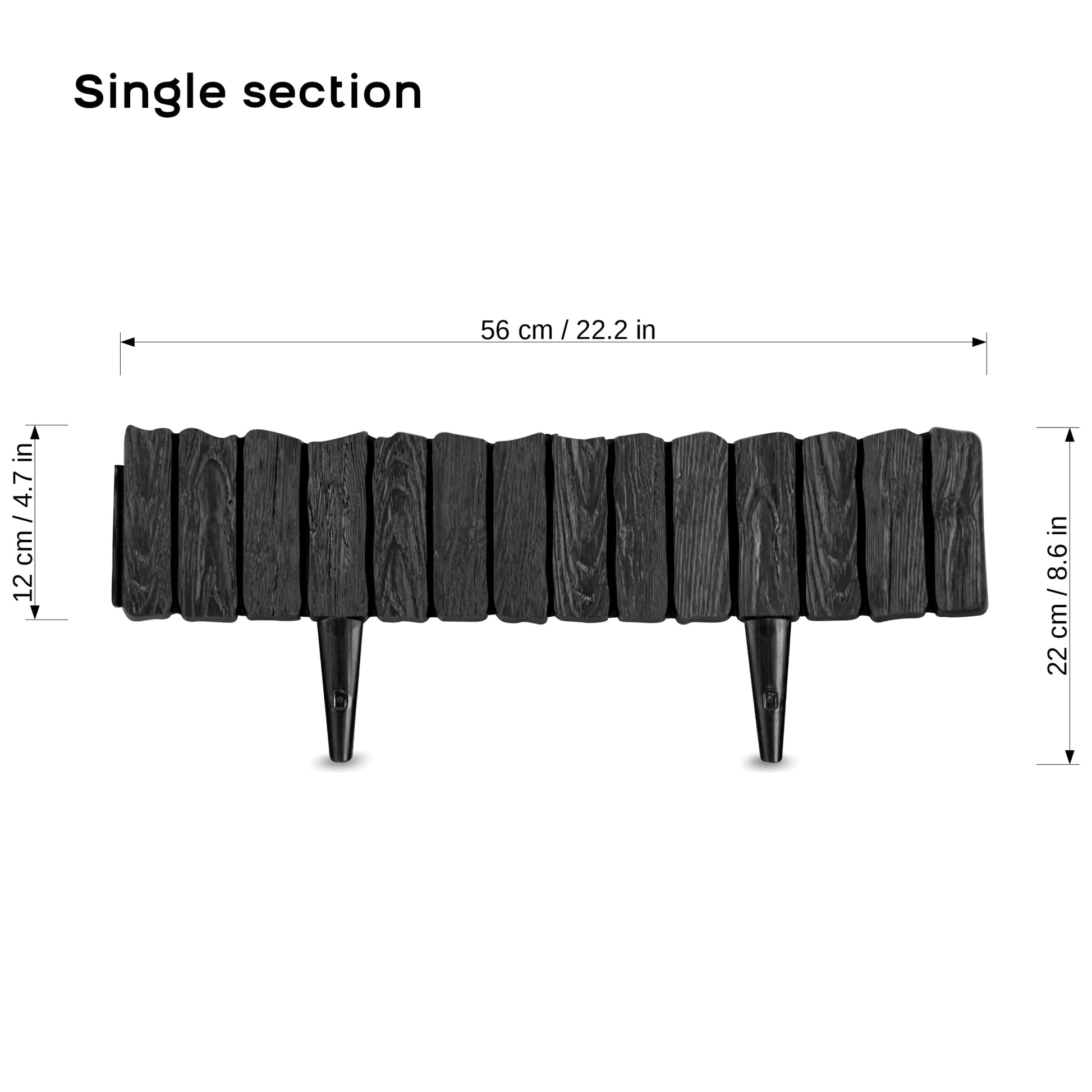 Black Lawn Edging Border - 2.26 m / 7.4 ft Long Garden Palisade with Wood Bark Effect - Fencing with Ground Stakes