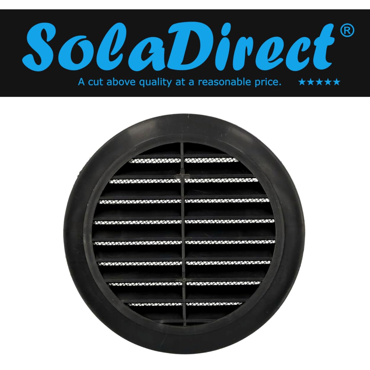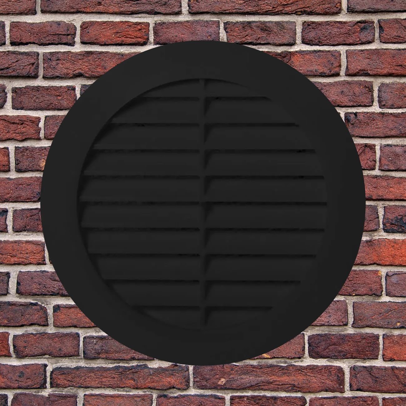 Black Louvred Wall Vent Grille with Flyscreen for 125 mm / 5" Round Wall Outlet - Air Ventilation Duct Cover with Flange