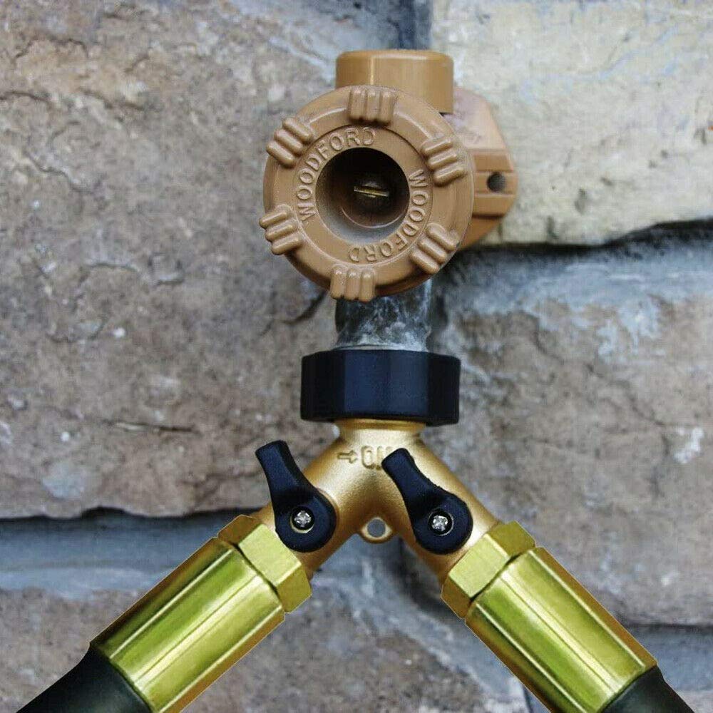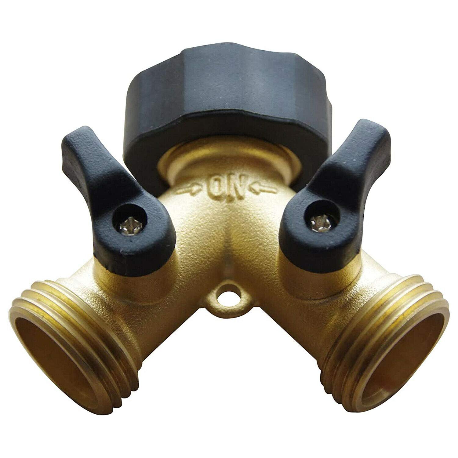 - Use The Dual Shut Off Valves To Control Water Flow Separately & Easily. Made from a single piece of solid eco-friendly brass, this garden hose splitter is heavy-duty and built to last. Won't crack or split like cheap plastic versions (Do remove it from your spigot when the weather turns cold).