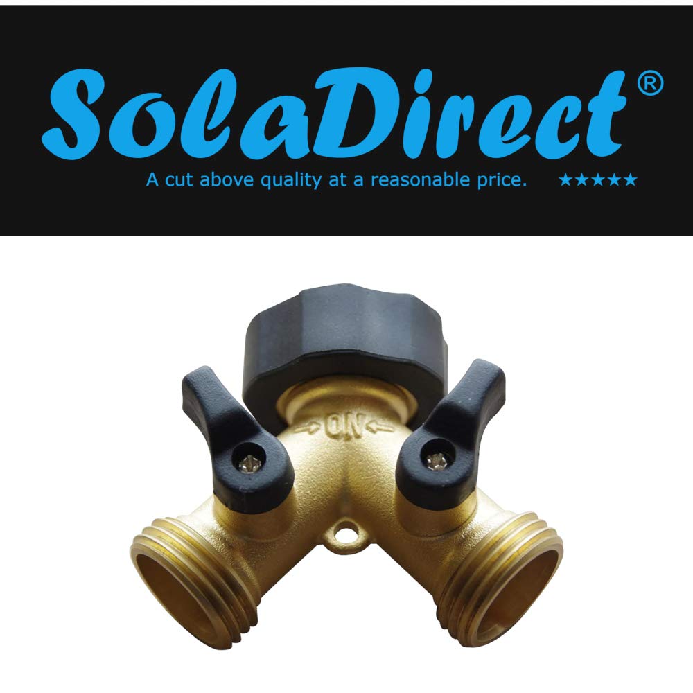 - Brass Garden Hose Splitter 2-Way Y Hose Connector Adaptor with Valves. Compatible with most popular brands. Hozelock Compatible. Gardena Compatible.