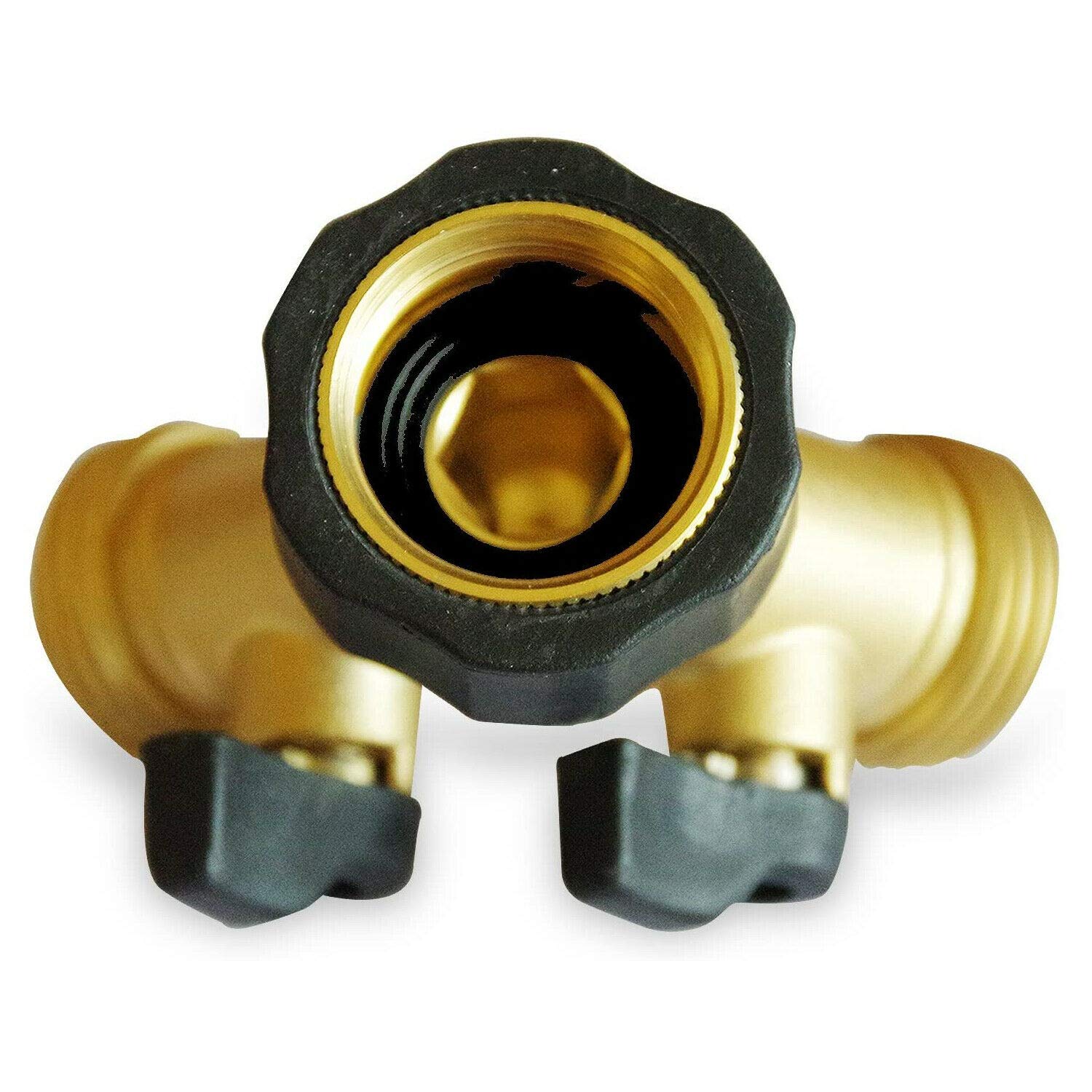 Brass Garden Hose Splitter 2-Way Y Hose Connector Adaptor with Valves