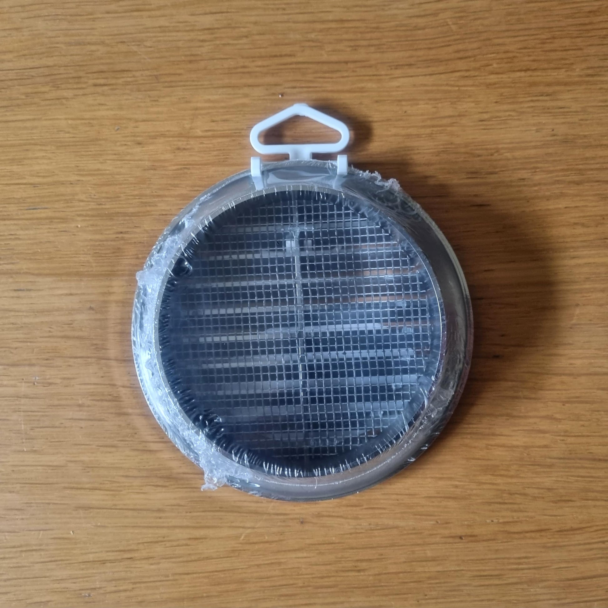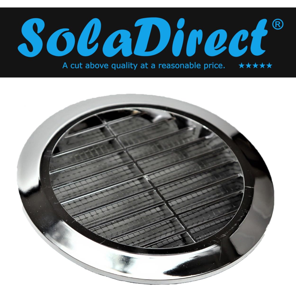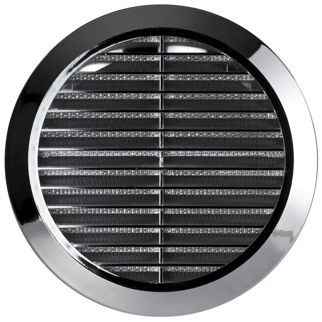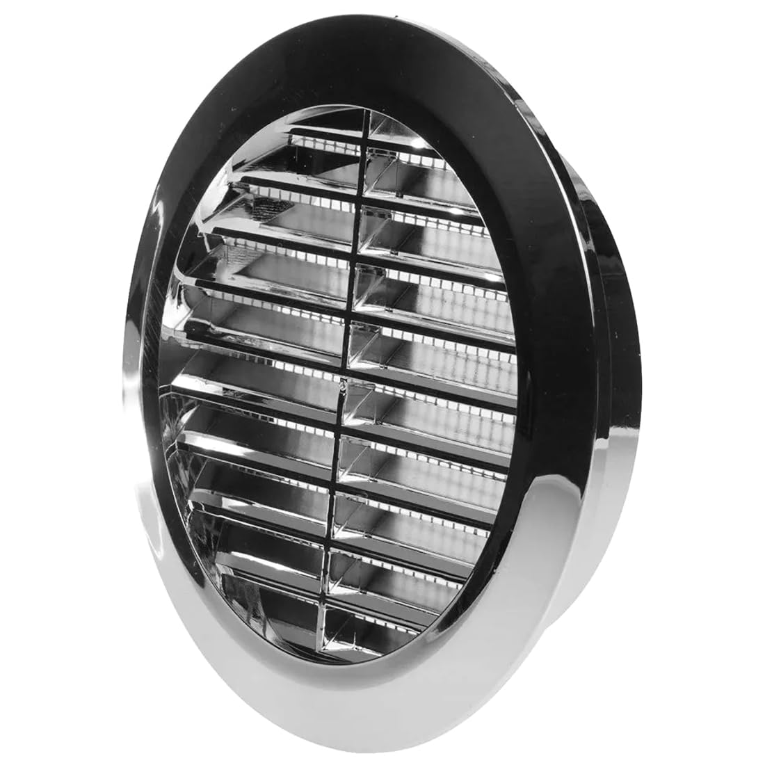 Chrome Louvred Wall Vent Grille with Flyscreen for 100 mm / 4" Round Wall Outlet - Air Ventilation Duct Cover with Flange