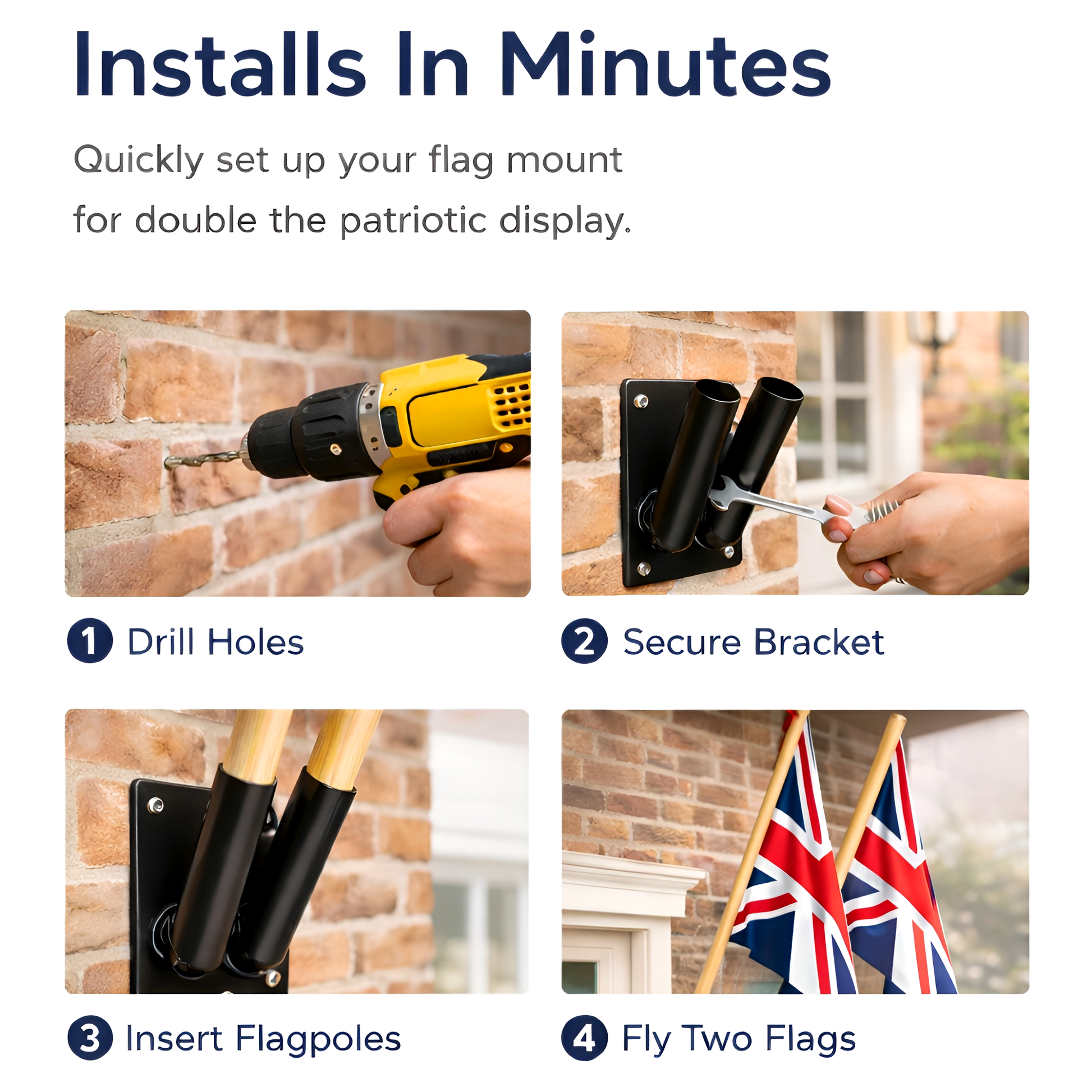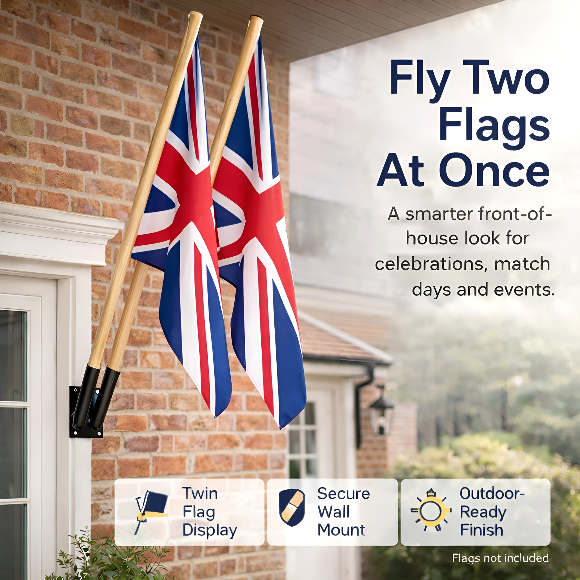 - Fly Two Flags at Once - Twin tubes let you display two flags side by side for celebrations, match days and events, giving a smarter front-of-house look on porches, balconies and garden walls.