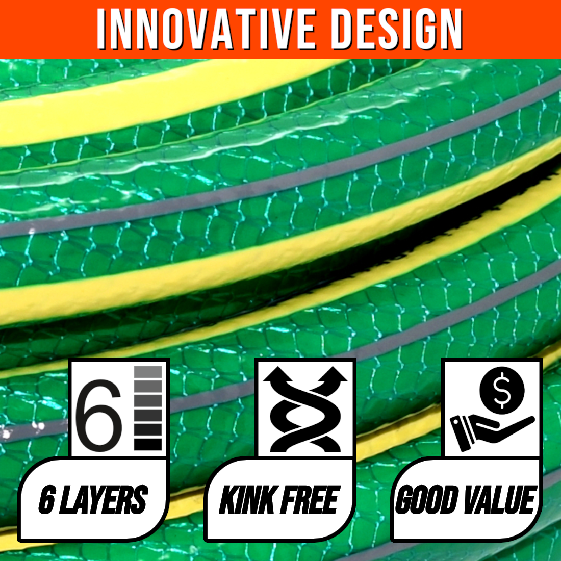 - 6-Layer Reinforced for Daily Demands - Built from durable phthalate-free PVC with textile mesh reinforcement, this 6-layer hosepipe resists delamination, pressure, and damage for long-term use in British gardens and homes.