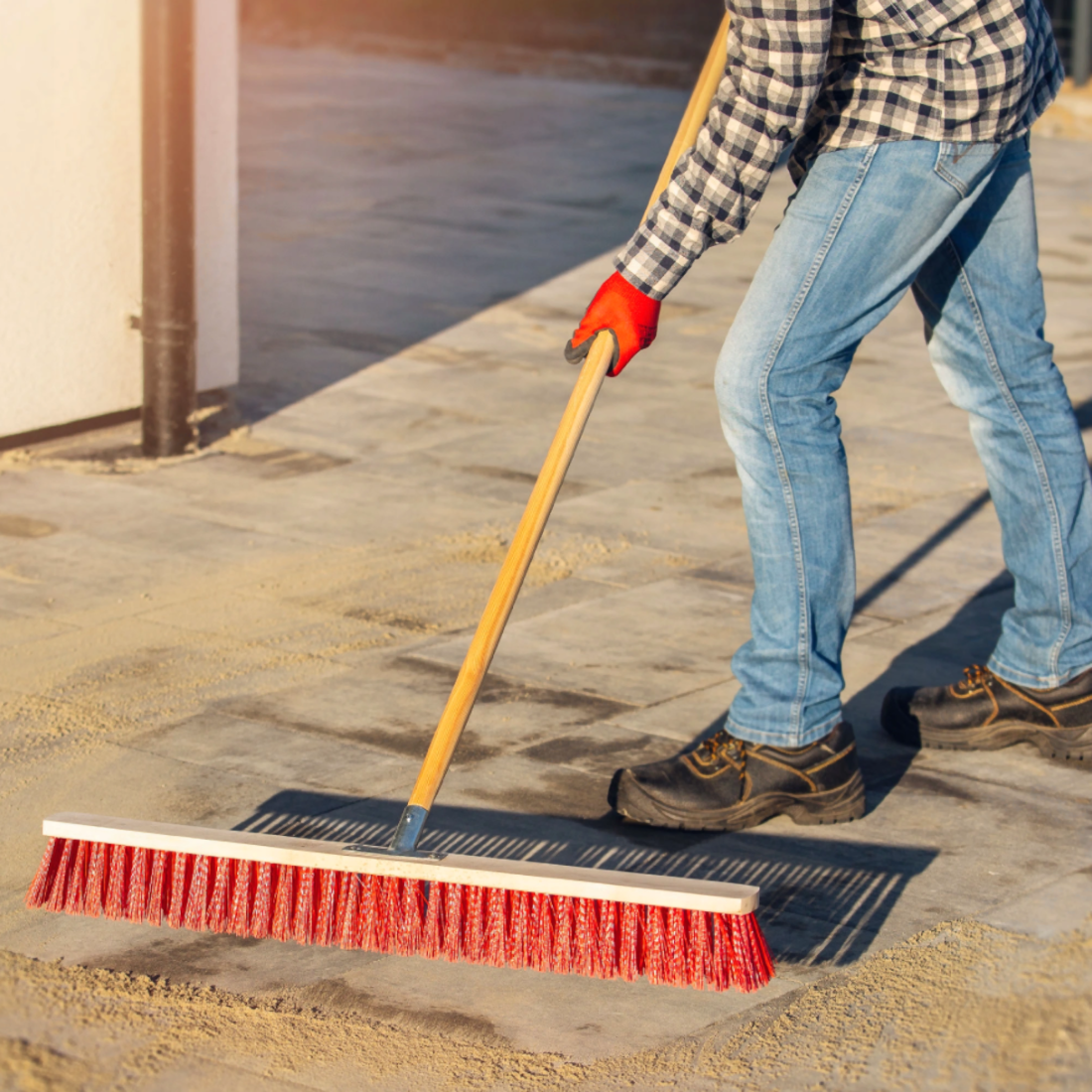 - A durable broom designed for works carried out in gardens, on block pavements, driveways, garden paths, patios, streets, and squares. The brush can be used for sweeping block pavements, concrete and other hard surfaces.