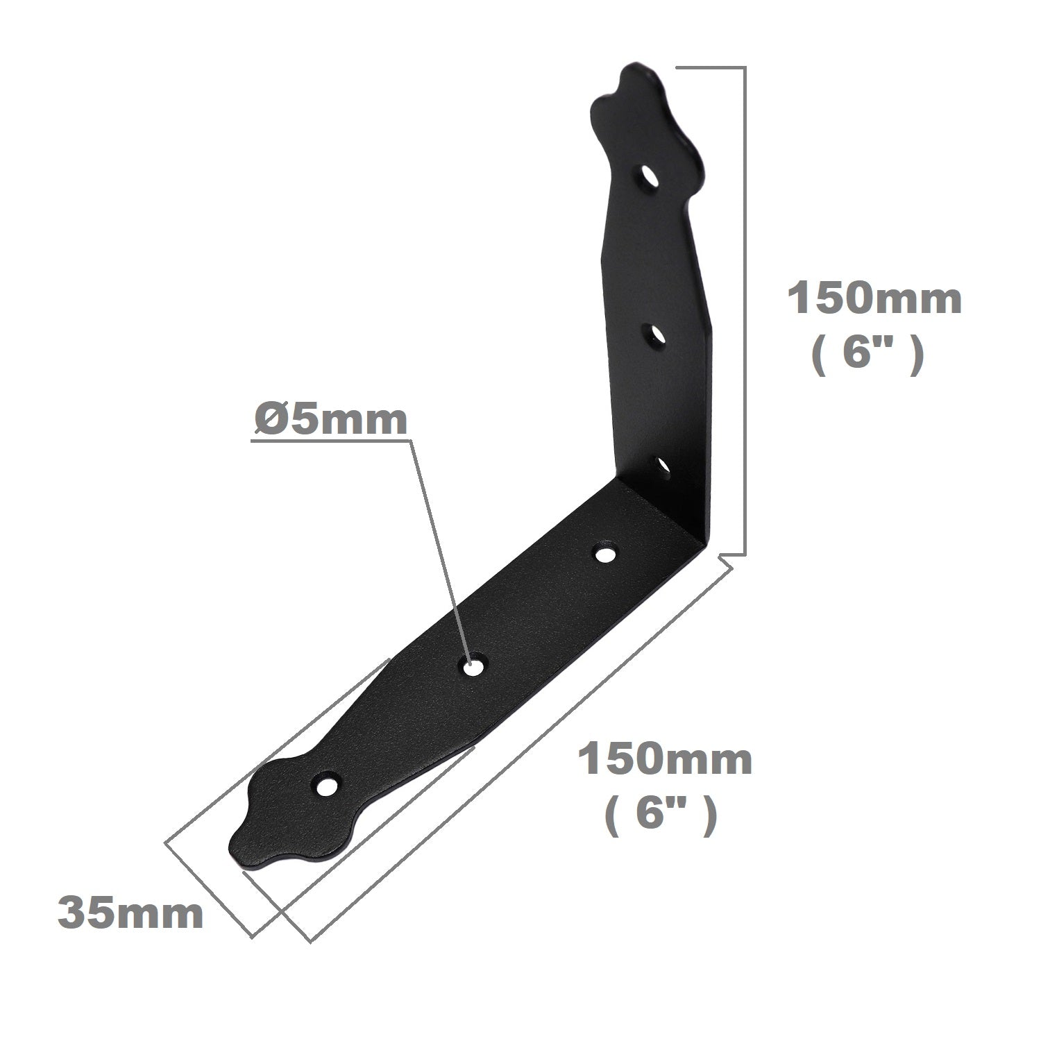 Pack of 2 x Black Corner Brackets - 150 x 150 mm Steel Right Angle Braces L Shaped Retro Decorative Metal Bracket 90 Degree Corner