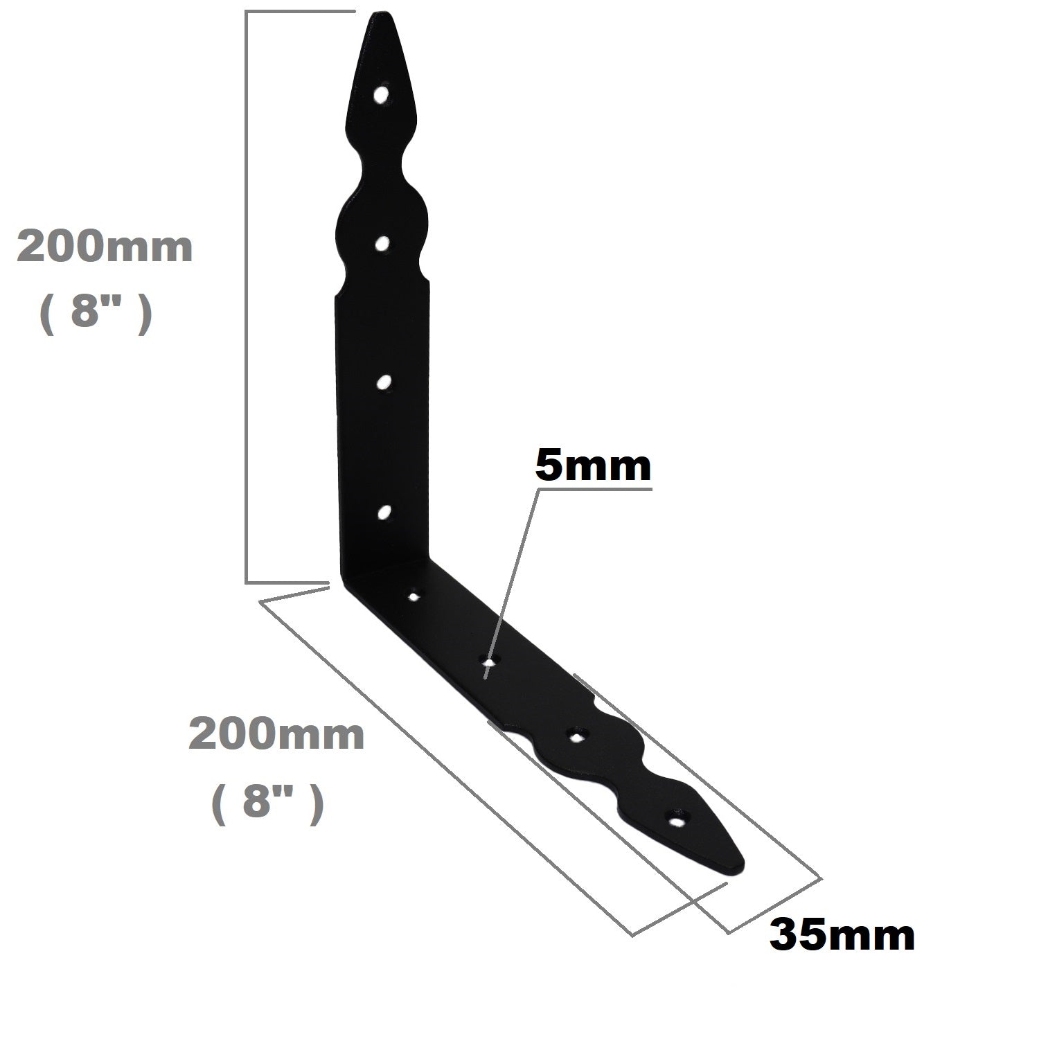 Pack of 2 x Black Corner Brackets - 200 x 200 mm Steel Right Angle Braces L Shaped Metal Bracket 90 Degree Corner Braces