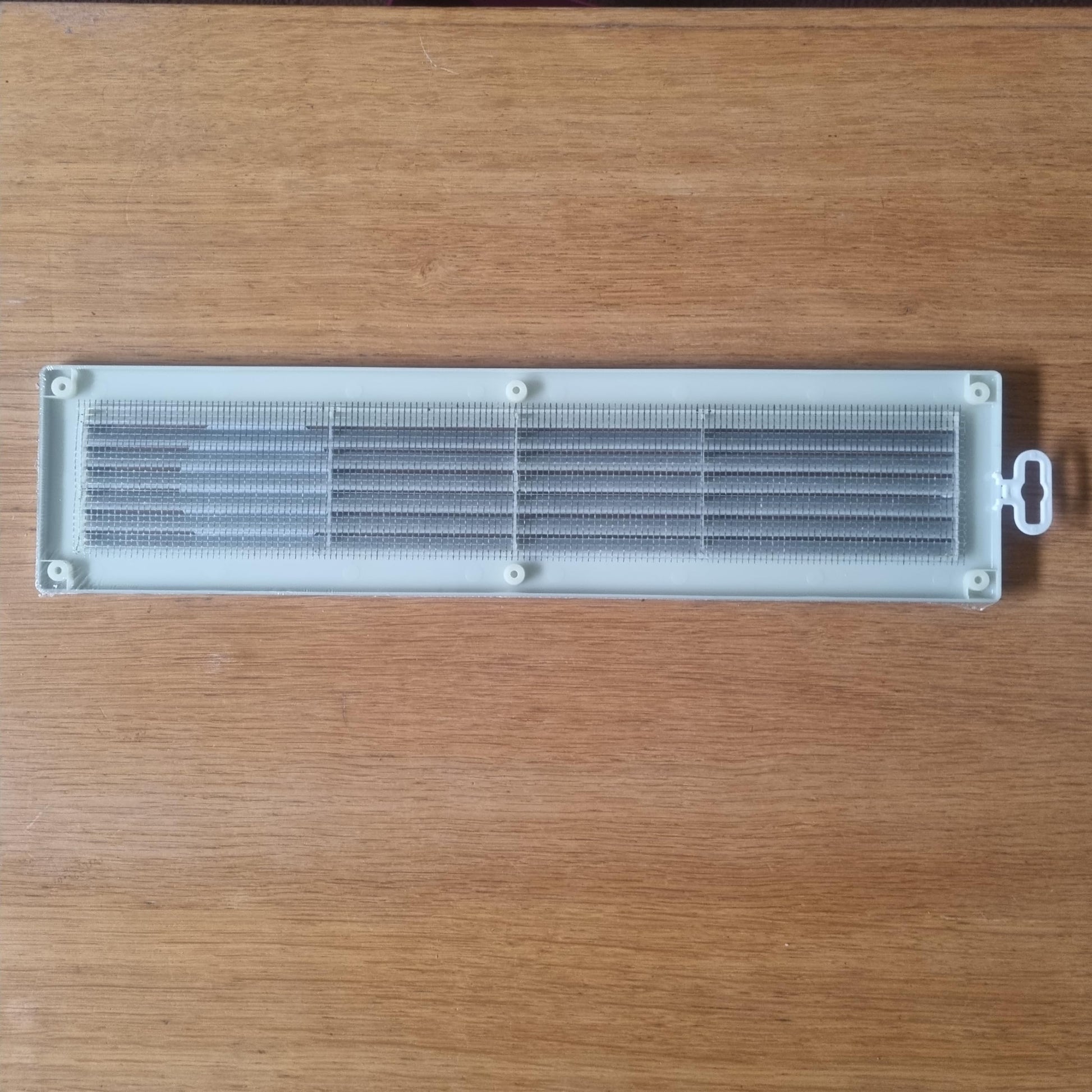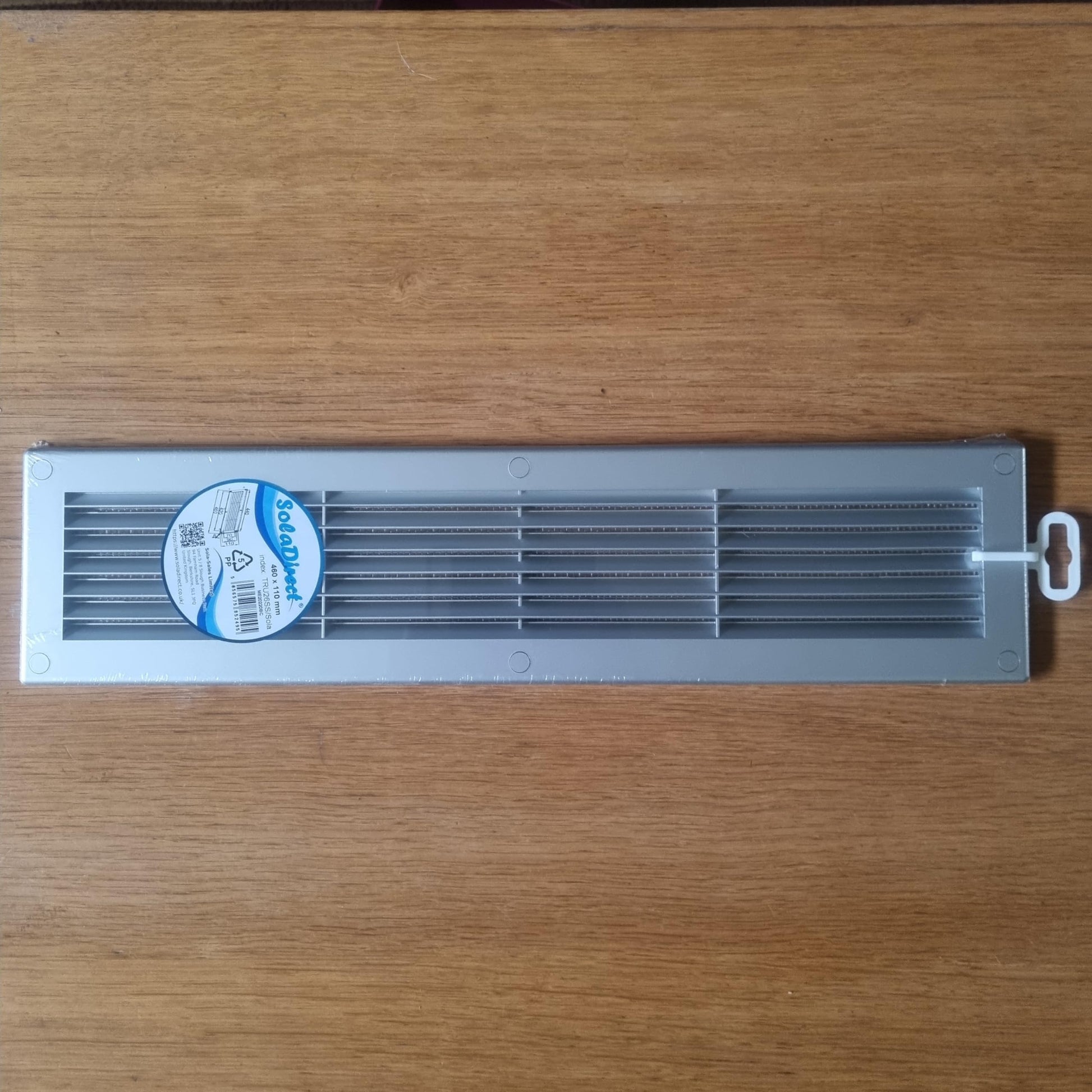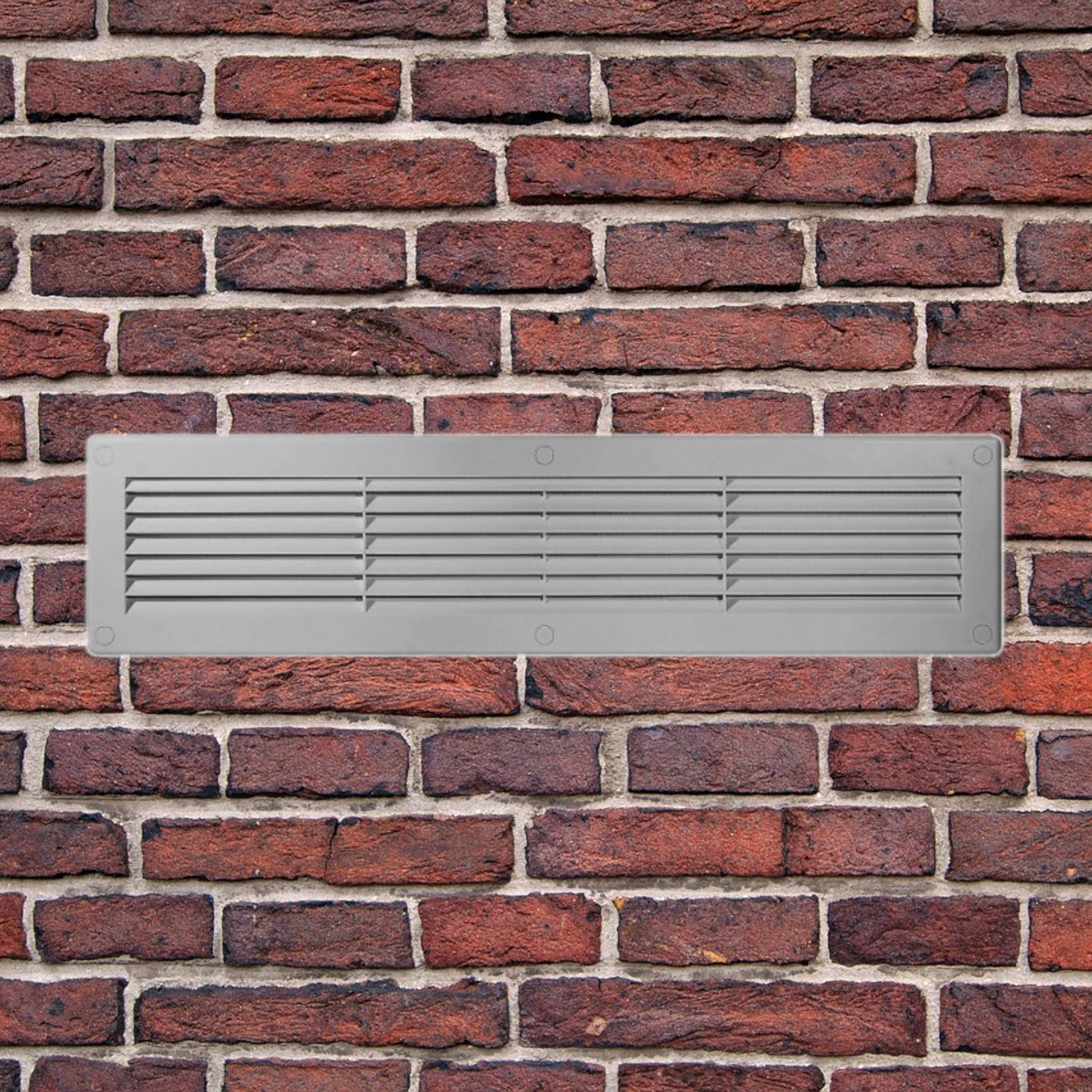 Silver Louvred Wall Vent Grille with Flyscreen and Screw Covers, 460 x 110 mm, Air Ventilation Duct Cover with Flat Back