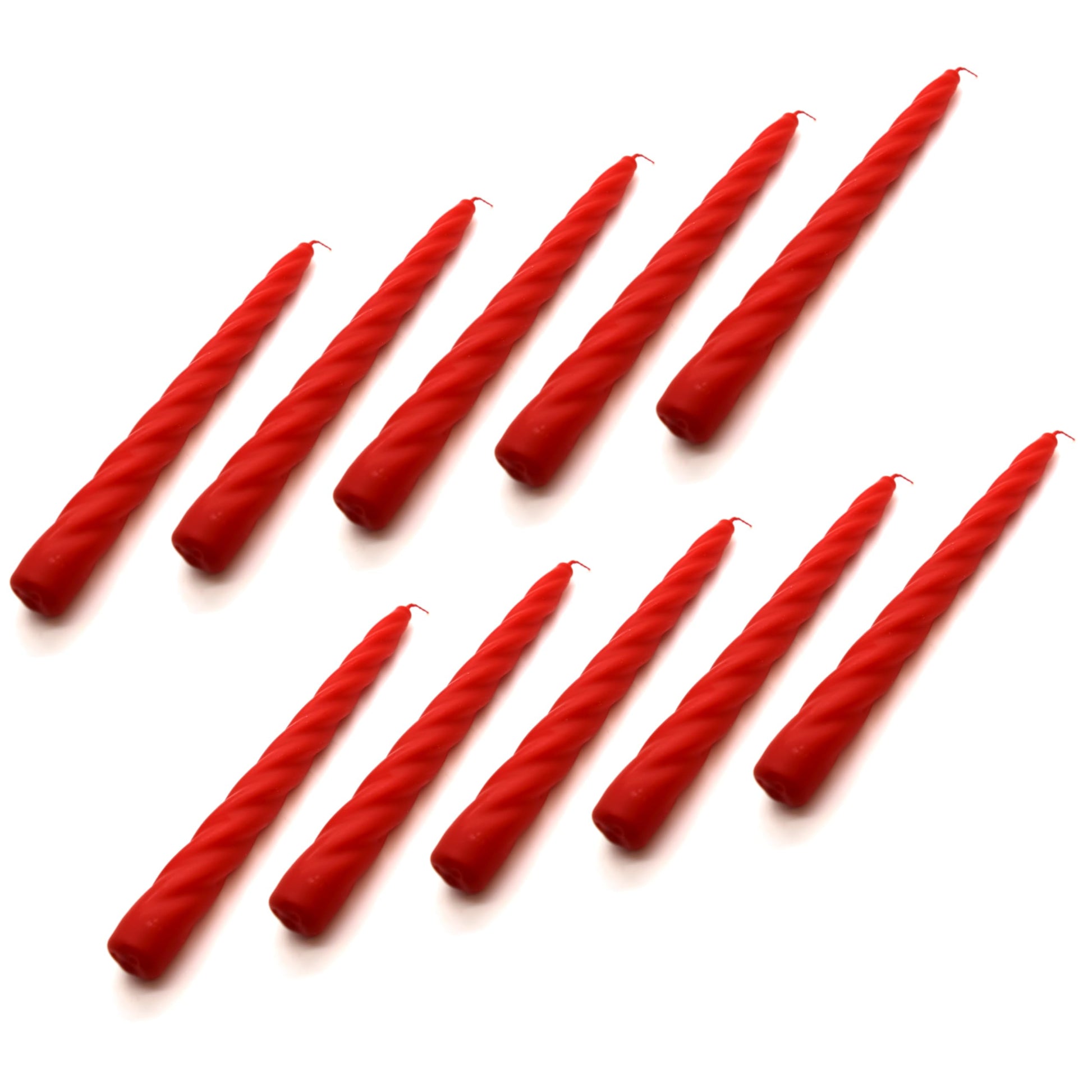 Tapered Dinner Candles, Table Spiral Candles, Pack of 10, Decorative Household Candles, Up to 7 Hours, 23 cm / 9" (Red)