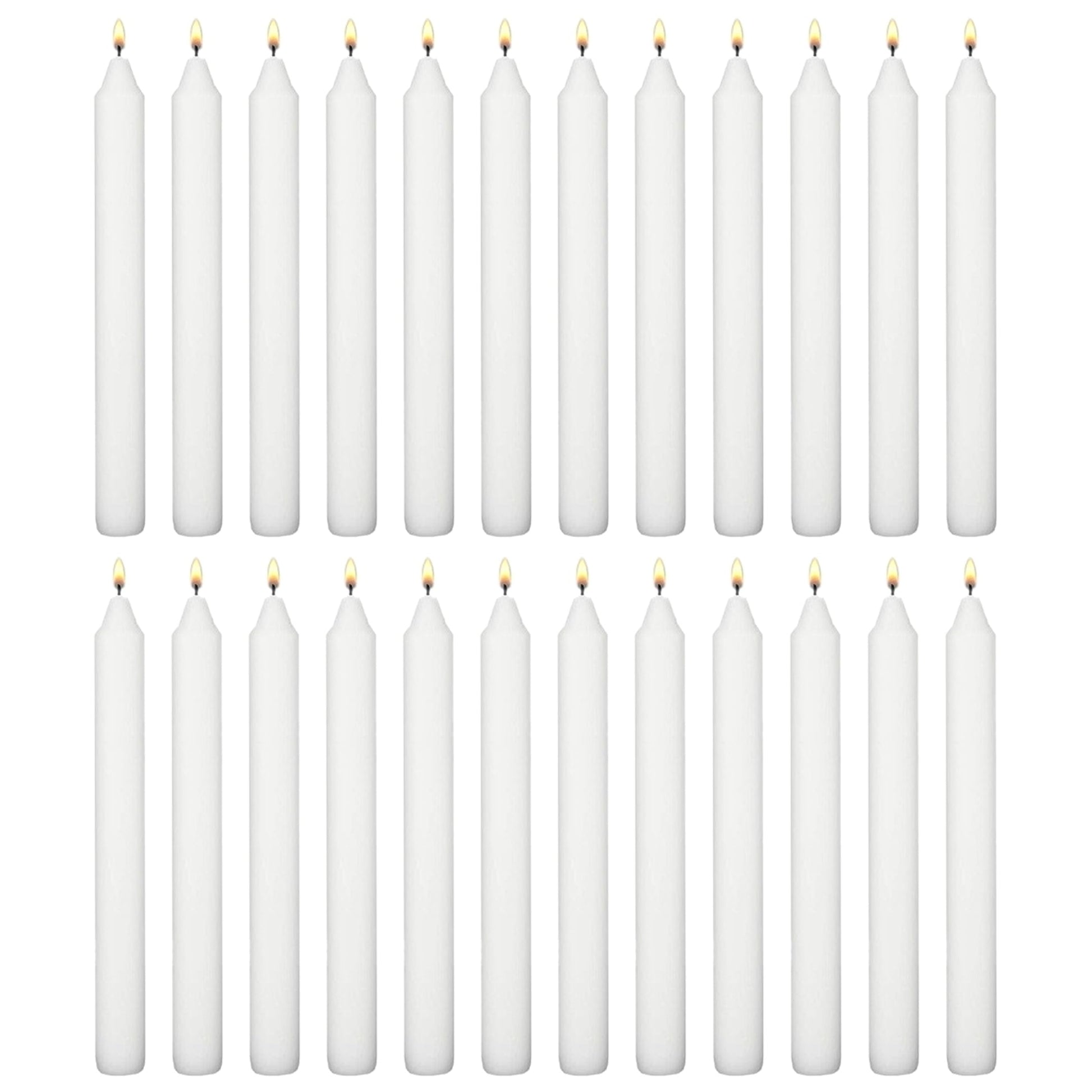 White Table Household Dinner Tapered Candles, Decorative Household Candles, 6 Hours Burning Time, 18cm / 7" Long (Pack of 24)